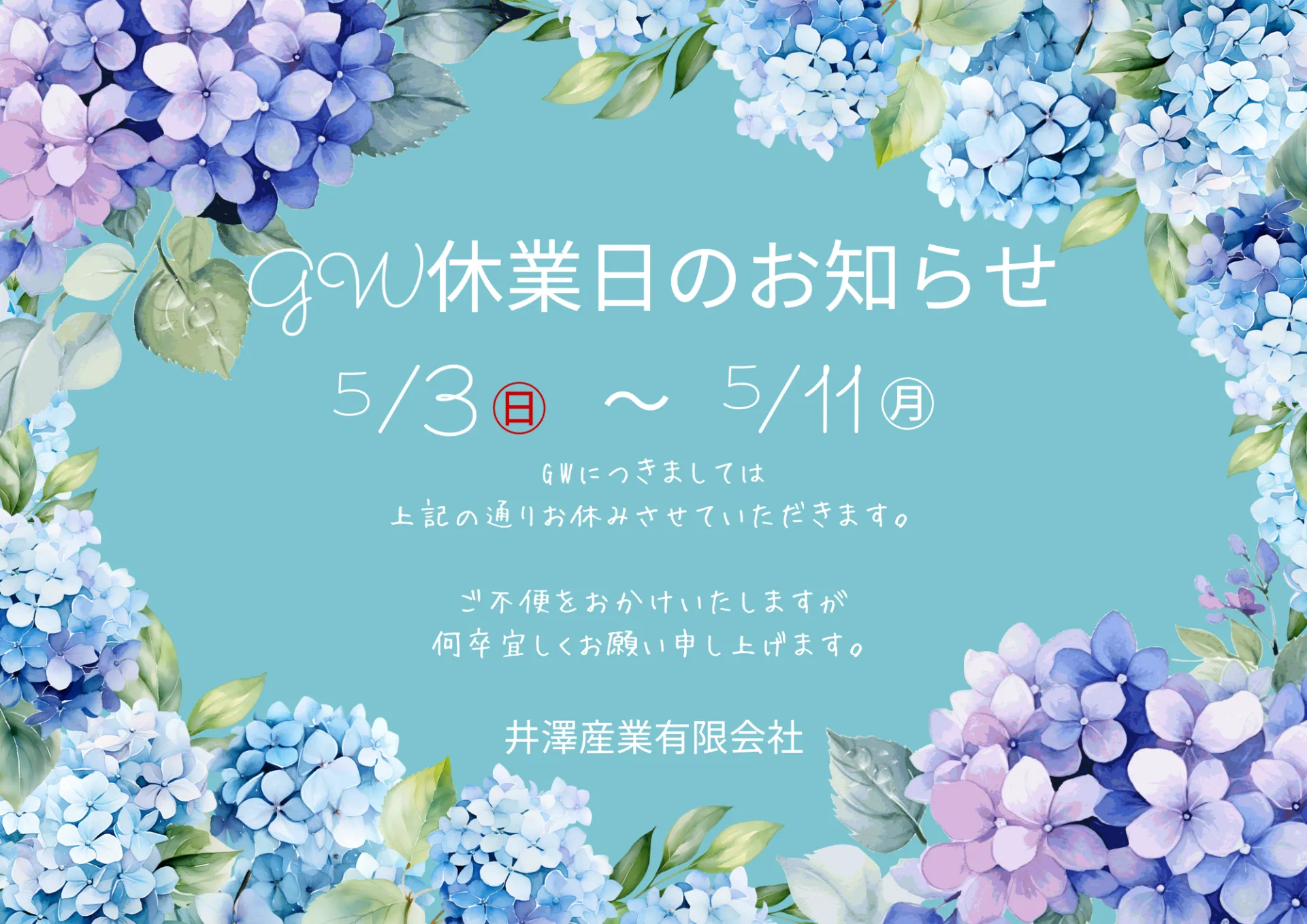 GW休業のお知らせ